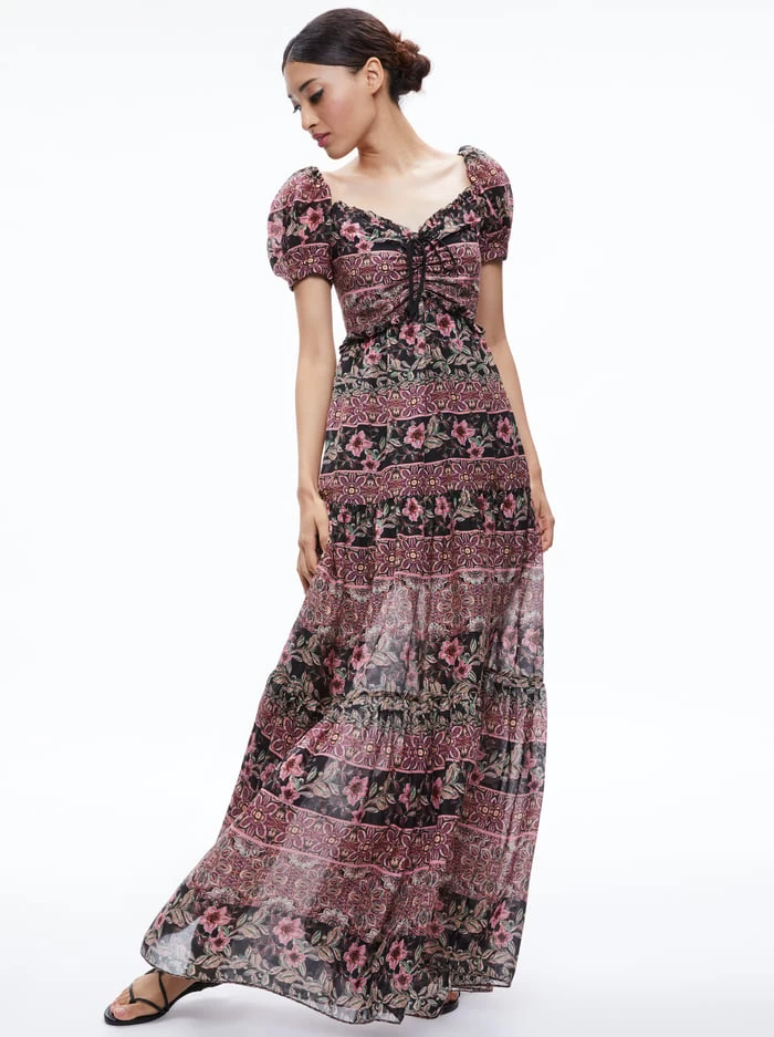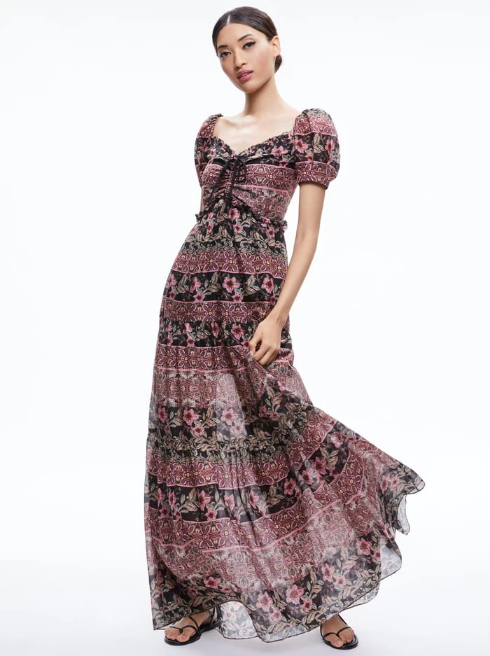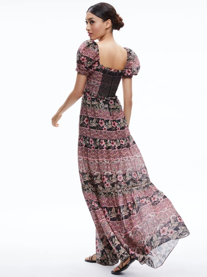 A maxi dress constructed in the most luxurious cotton and silk blend featuring a boho print. We love the smocking at the chest, sweetheart neckline, tiered skirt and handy back zip closure. Lined in 100% cotton and ready for every special occasion on your calendar.