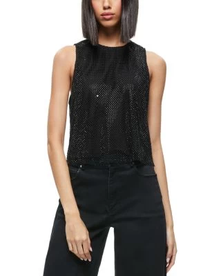 - Allover net overlay with rhinestone detailing