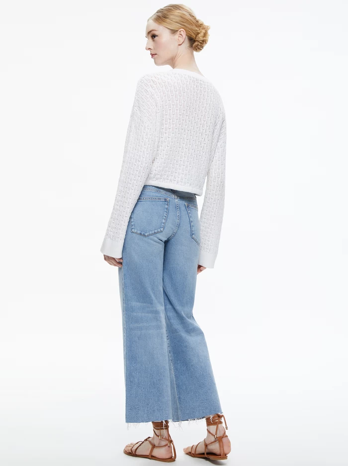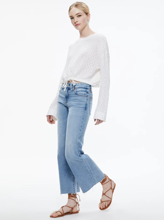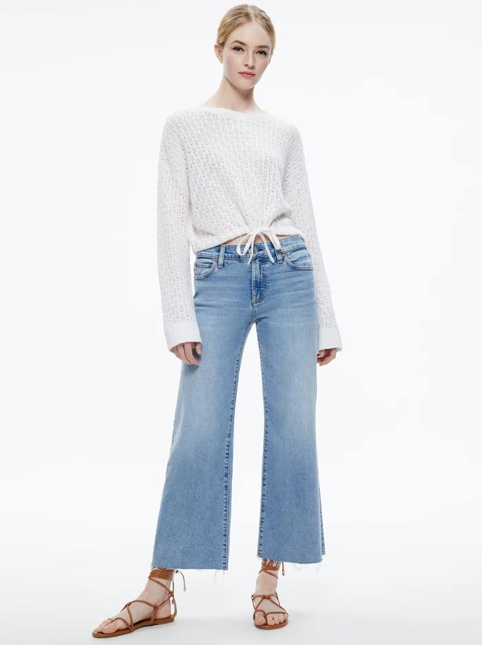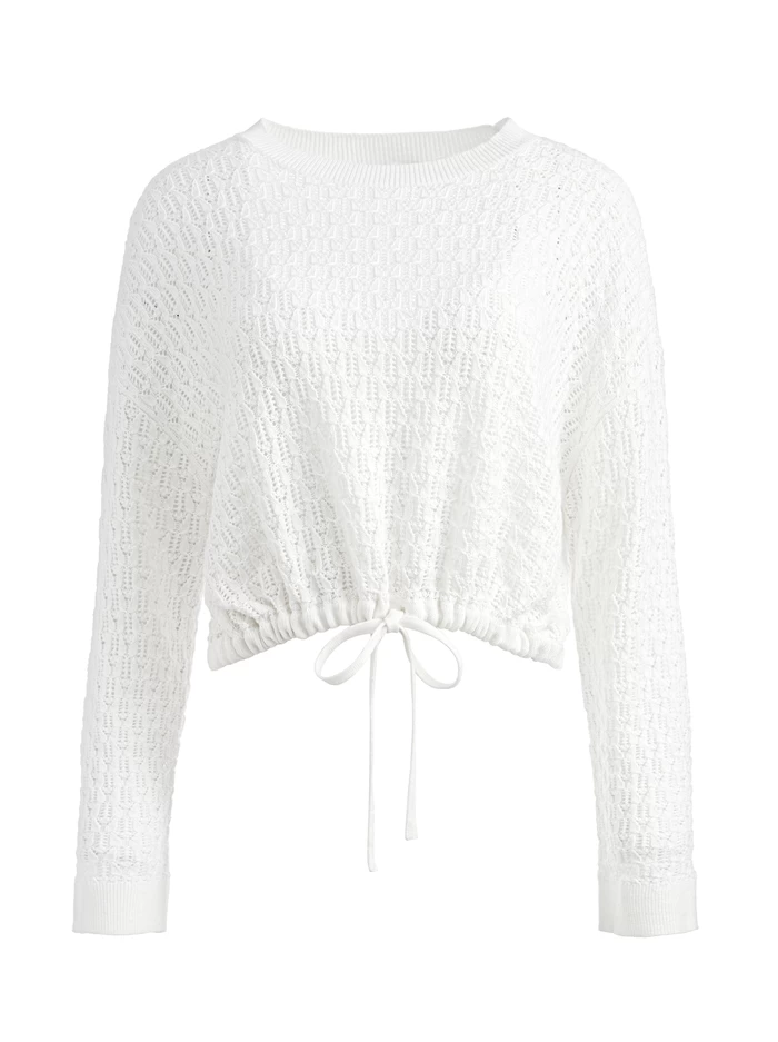 We have a thing for pointelle and this cute pullover is another way to wear it. We love the cropped fit, drawstring hem and soft linen and cotton blend. It’s basically your favorite long sleeve T, taken up a few notches (as we do here in A+O).