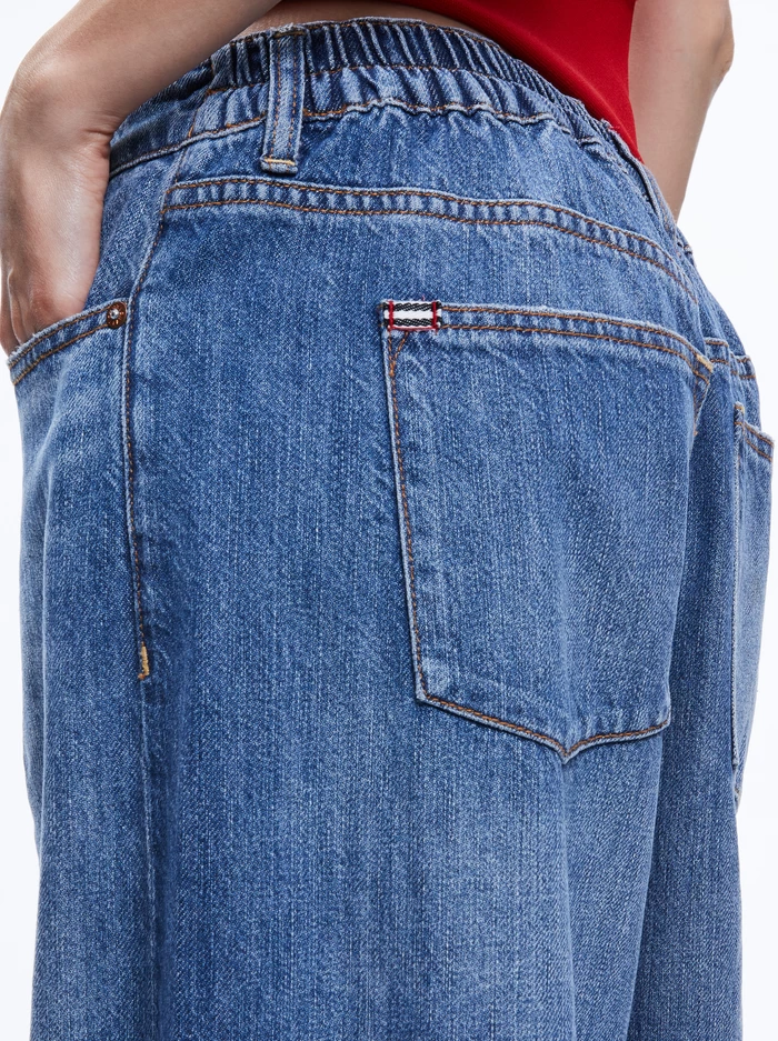 Chaz is a low rise, oversized jean with an elastic back waist which makes it the epitome of comfort. We love it with sneakers, sandals and basically every other shoe – and thanks to the extra-soft denim you’ll want to wear it every single day. You’ve been warned.