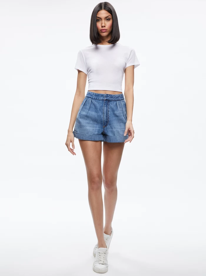 These are as show-stopping as a short gets. The tailored fit includes front pleats and a cuffed hem to keep things polished. Pair with tees or sweaters, you’ll look chic either way.