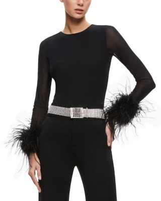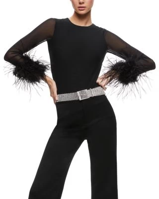 - Sheer mesh long sleeves with feather cuffs