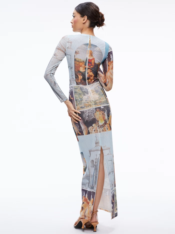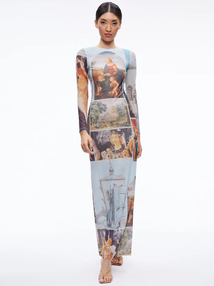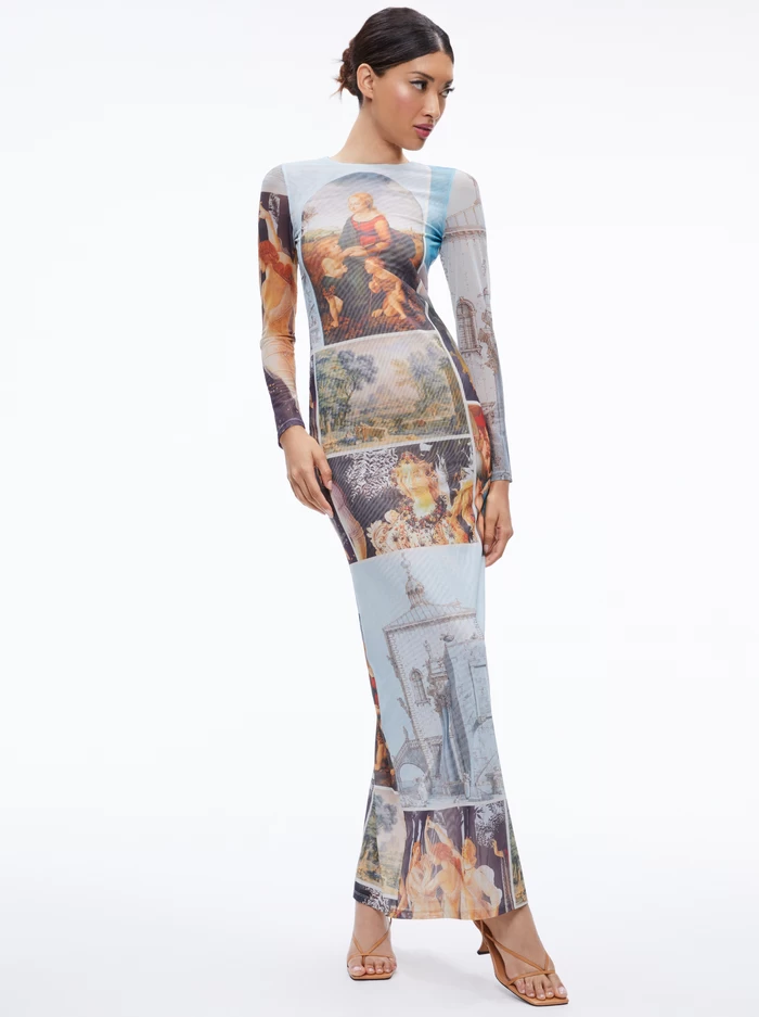 This gorgeous print, called “Sunday Dreaming” was developed exclusively for us-and it’s a wearable work of art. We especially love it when applied to our Delora maxidress in a mesh fabric. Such a unique and special statement piece that you can wear over and over again.