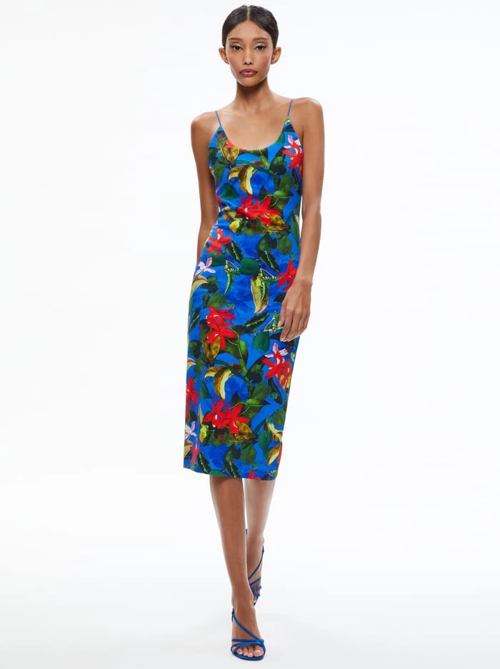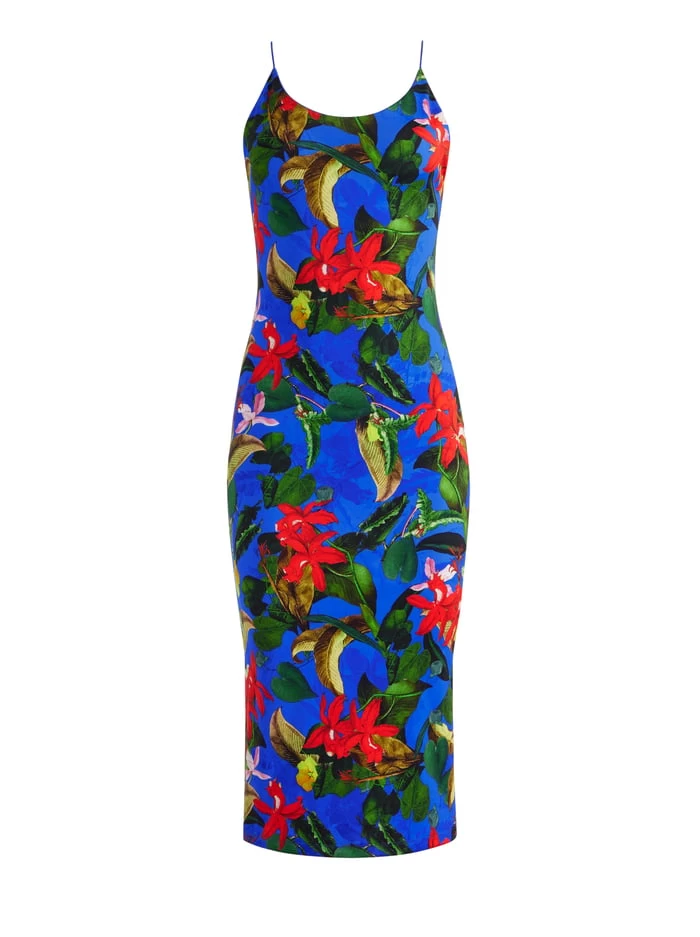 This bodycon dress looks great from every angle: A flattering fit, scoop neck and scoop back, plus a tropical print we love. It’s an easy one-piece that also feels – and looks – amazing.