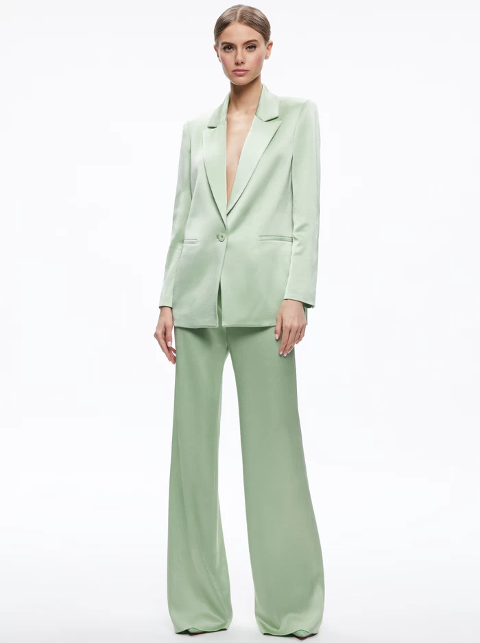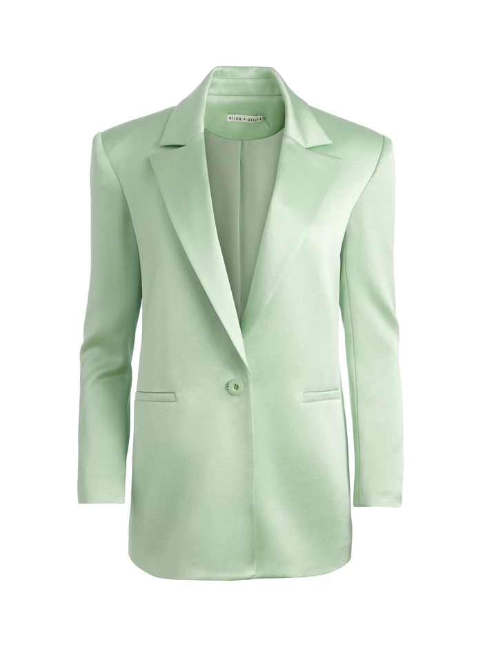 The boyfriend fit and sheen finish make this blazer a smart go-to whenever you want to look boss. And honestly, when don’t you want to look boss? It includes a notched collar, front pockets and a long length.