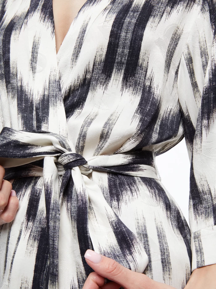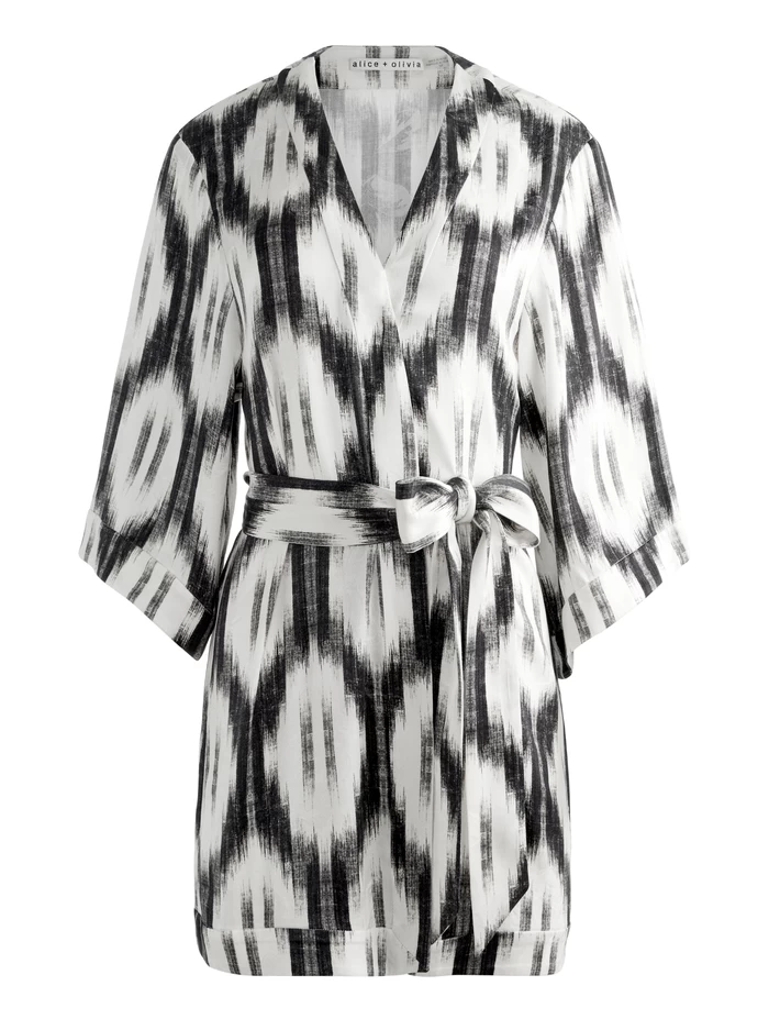 A new way to kimono (and you know we love a kimono): With a tie belt, mid length and a bold ikat print. Throw it over camisoles and tees, swimsuits, or nothing at all. Your call.
