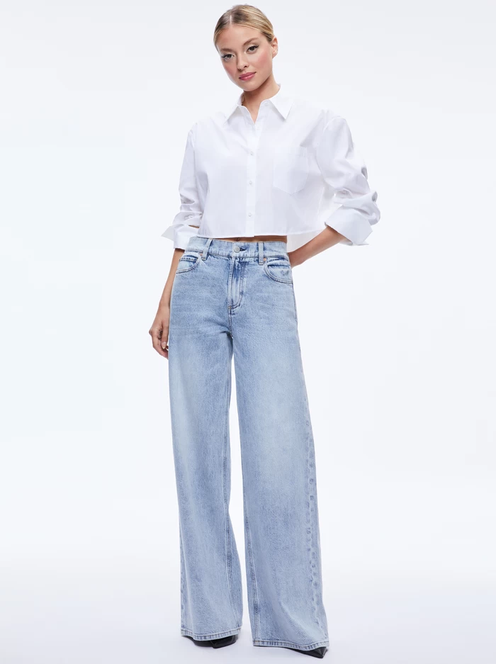 We took the classic button-down to a whole new level with Finely. Her easy, oversized but cropped fit means she works over anything you pair her with and dramatic cuffs up the intrigue.