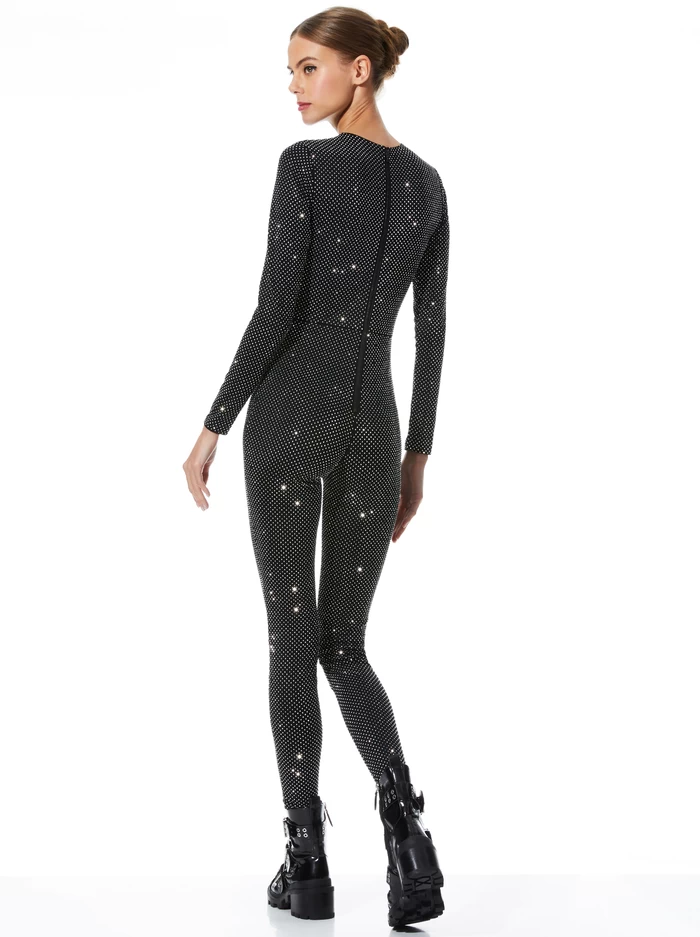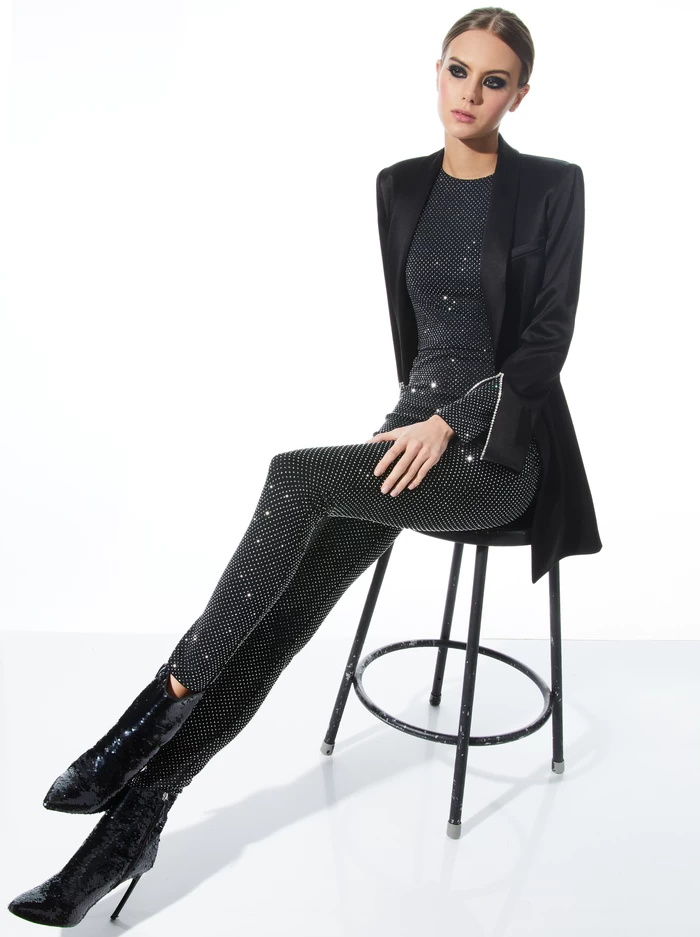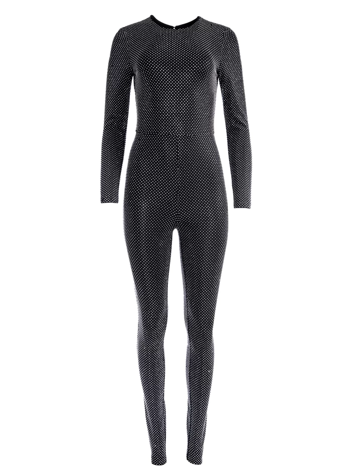 Say hello to the new one-piece of the season, the Catsuit! This sexy jumpsuit includes a round neck, crystal embellishments, and long sleeves to provide a sleek yet comfortable “take-on-the-town” look. This stretchy catsuit makes getting dressed to go out incredibly easy (15 seconds and you’re out the door and turning heads!)