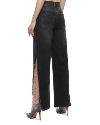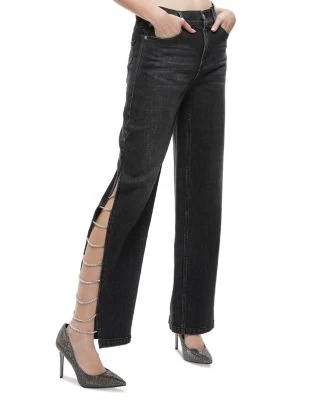 - Side slits with rhinestone chain detailing