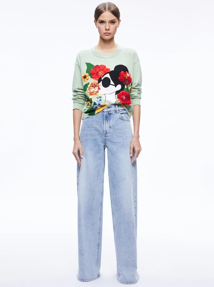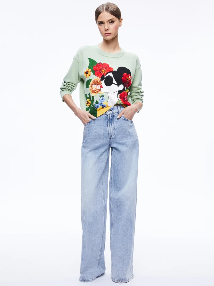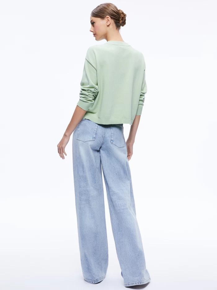 This perfect pullover includes a slightly relaxed fit, ribbing at the cuffs and waist and a bit of a cropped silhouette. So good with denim, skirts and everything else you may pair with it.