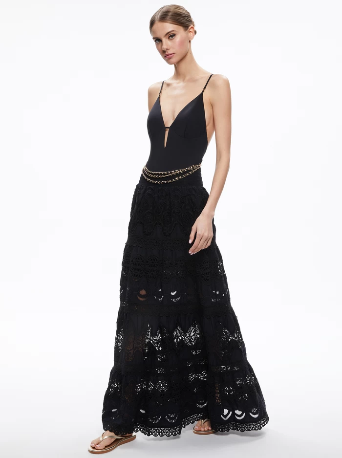 Introducing Alice + Olivia swim, just in time for your best summer yet. Each suit is designed to make you feel your most confident with special details (it’s the A+O way, afterall). Like this one-piece, with a deep neckline and key hole opening at the chest. We craft all our suits in a durable fabric that molds to you. Plus a removeable belt that has Bond girl vibes.