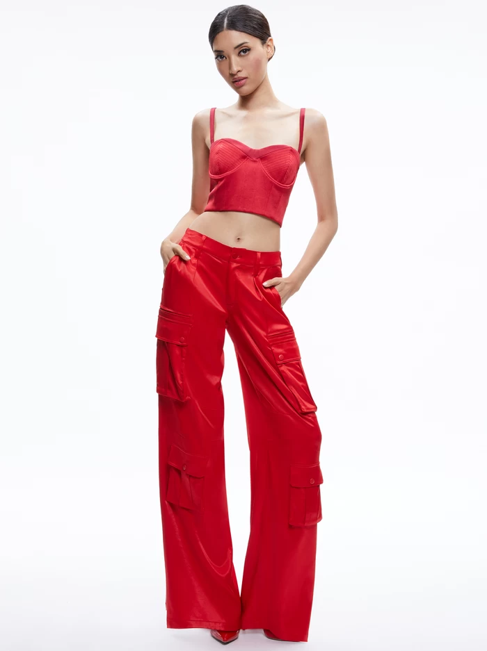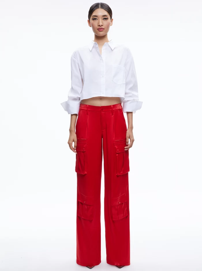 One of our favorite silhouettes of all time, now rendered in a chic satin fabric. With a wide straight leg, cargo design and easy fit this takes a classic to a whole new level.