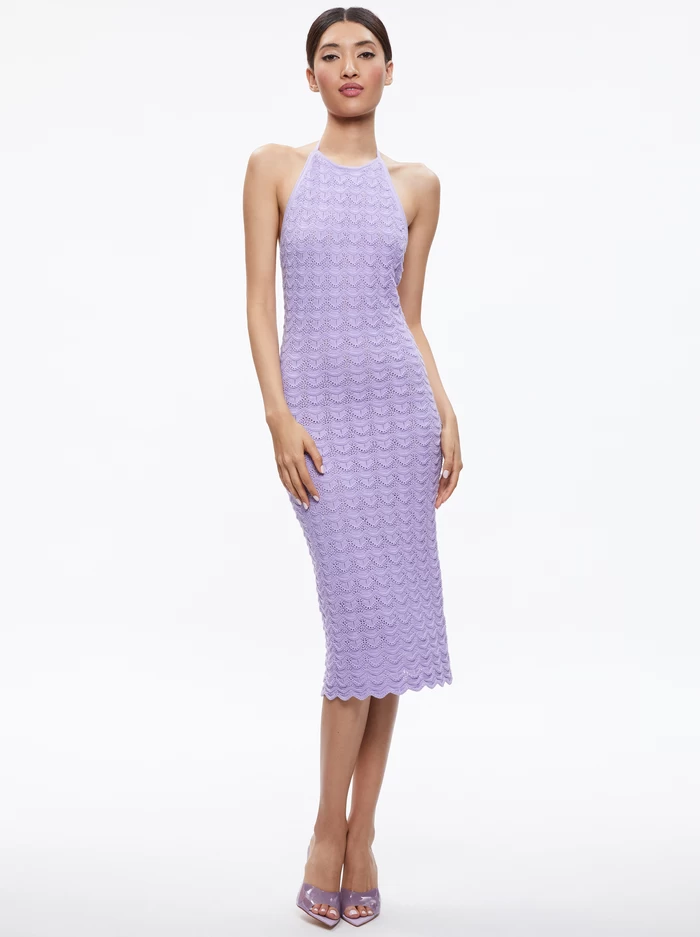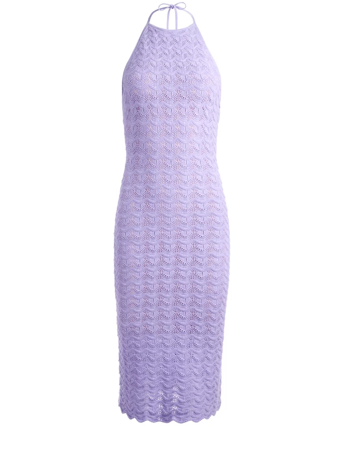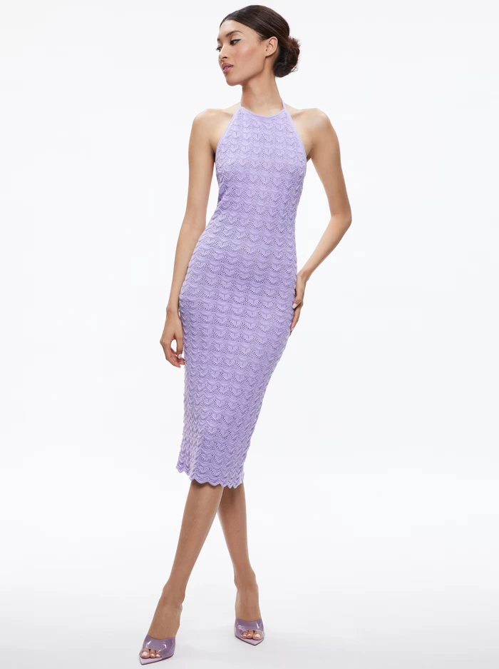 We love a pointelle knit and this stretchy, fitted midi dress is a new way to wear it. In a cotton and wool blend that feels lightweight and ultra-comfy. The halter neckline makes it extra flattering.