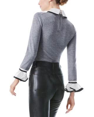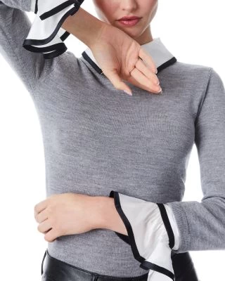 - Ribbed cuffs at sweater, ruffled cuffs at shirt