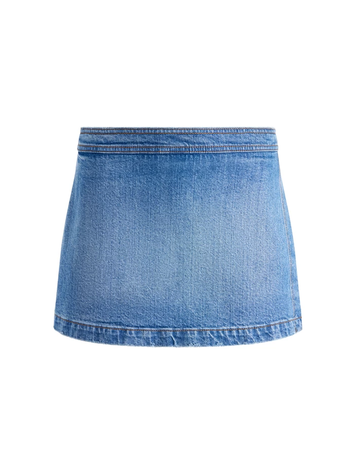 It’s a skirt! It’s shorts! It’s a skort. Everything you love about both, in one piece and rendered in the perfect washed denim. It includes a mid-rise, mini length and just enough stretch to keep you super-comfy.