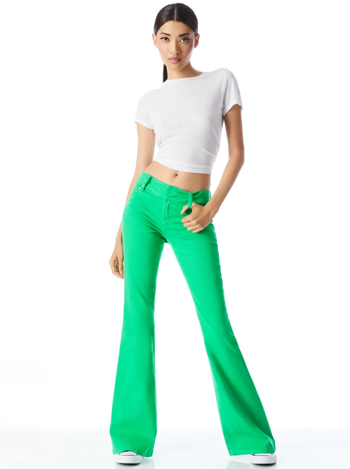 Our founder Stacey’s namesake pant: This has a low rise, long full length, and a bell flare. It’s her favorite pant, if you can’t tell from the name.