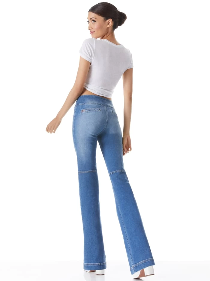 Our signature bootcut pant, now in denim that feels perfectly tailored for anything (office or after hours). The wide waistband is incredibly flattering (not that you need any help).