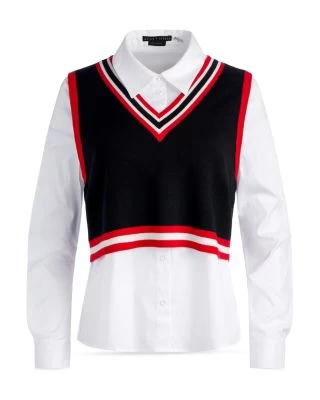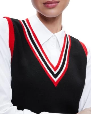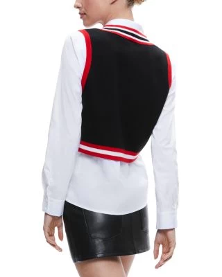 - Detachable cropped sweater vest with tipped stripe trims