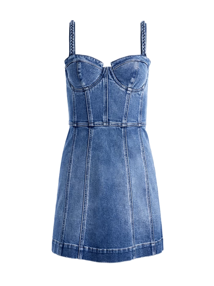 A dress you’re going to want to dance in: The Raylene has a bustier, braided straps, and the perfect mini length. Just look at how she moves, too. So fun.