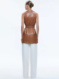 The new statement piece: A mini-length vest with the softest vegan leather, classic lapels, and an adjustable tie at the waist. Wear it over denim, trousers or even on its own. It’s a timeless piece that feels incredibly modern, too.