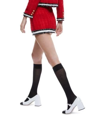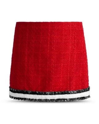 - Contrast striped trim at hem