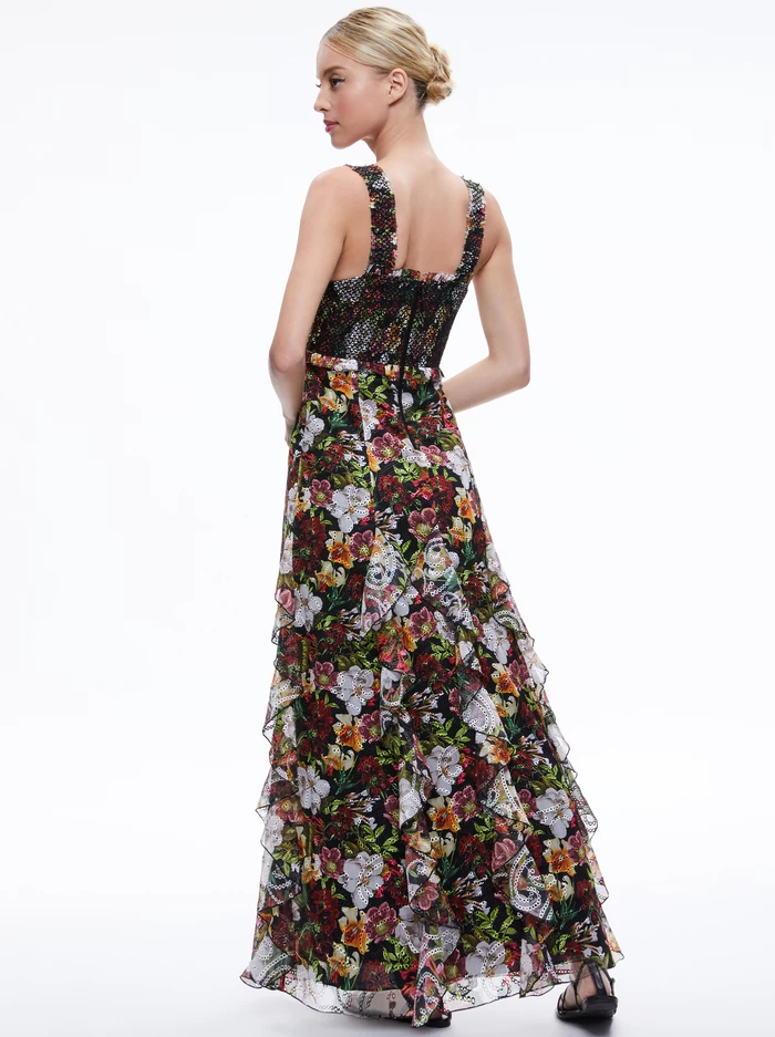 A whimsical take on one of our favorite silhouettes, the empire waist, this includes the prettiest embroidery and godet skirt.