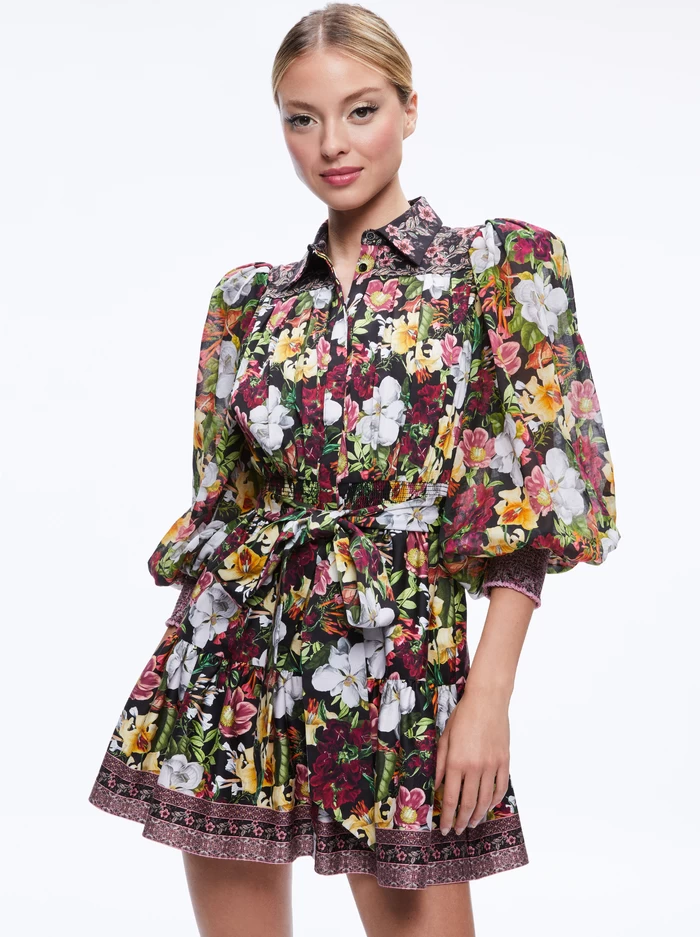 The perfect dress: puff sleeves, tie belt waist, and in the most beautiful print.