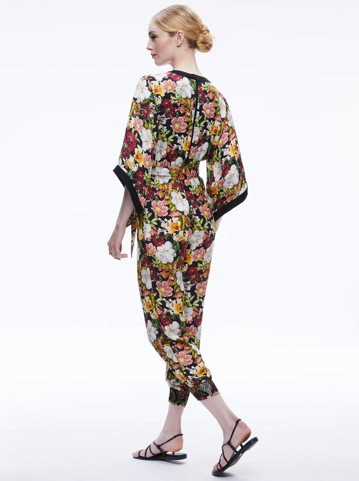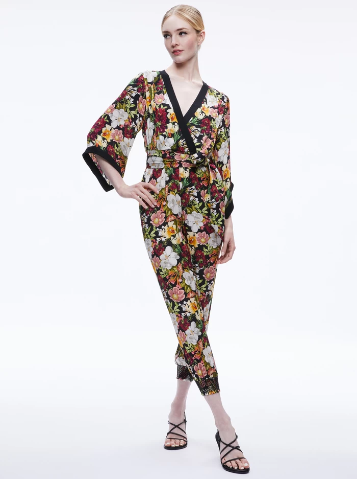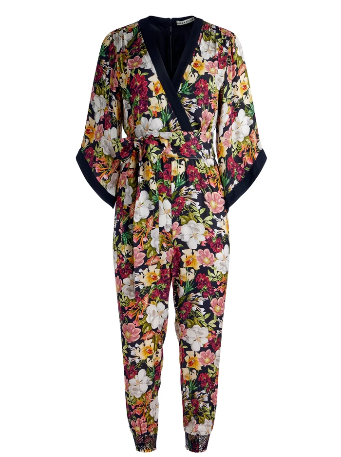 The Juniper jumpsuit is designed to stun with its wrap front jumpsuit construction. Guaranteed you won’t find anything else like it. Other details to note: The jogger-style pant, the handkerchief sleeves and the tie waist.